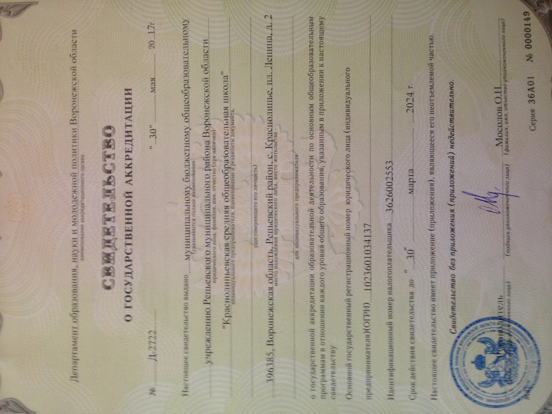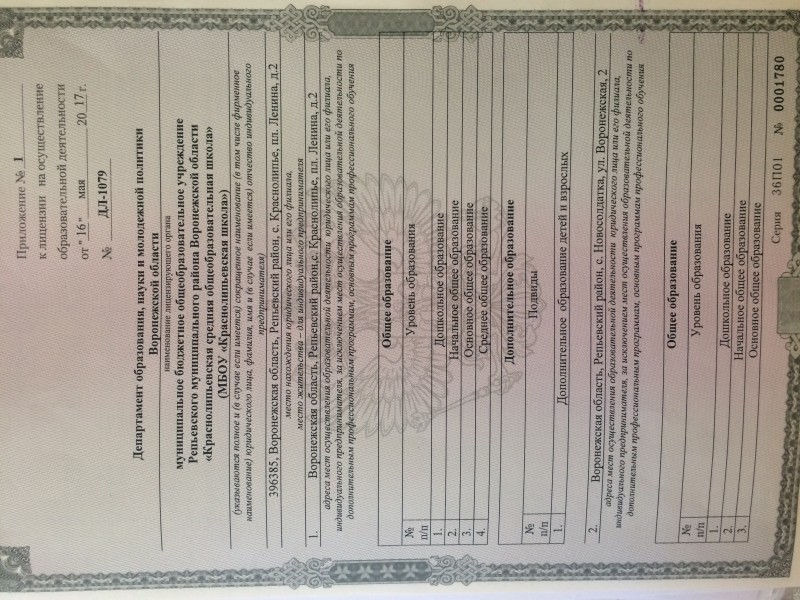 | Адрес местонахождения образовательной организации* | 396385 Воронежская область, Репьёвский район, с. Краснолипье, пл. Ленина, д.2 |
